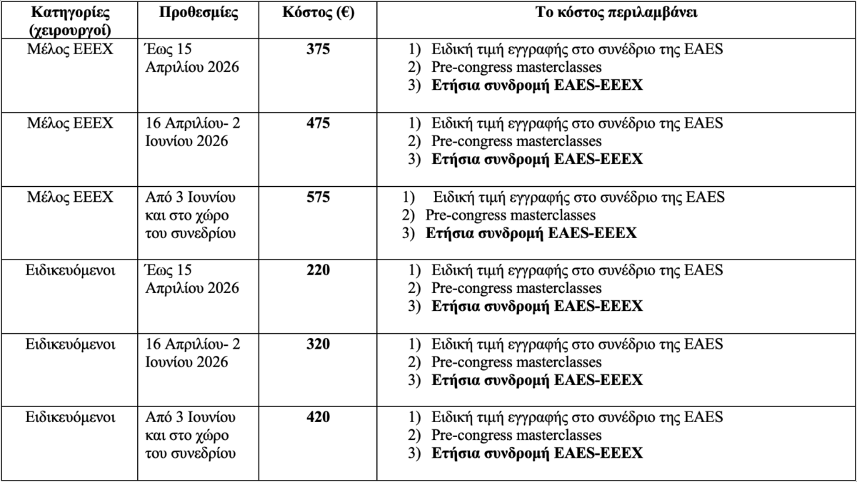 Ιδιαίτερης σημασίας είναι το γεγονός ότι η ΕΕΕΧ πέτυχε, ειδικά για τους Έλληνες χειρουργούς, ένα εξαιρετικά ευνοϊκό πακέτο εγγραφής, με συνολική μείωση κόστους που προσεγγίζει το 50% σε σχέση με τις συνήθεις χρεώσεις συμμετοχής. Η συγκεκριμένη πρωτοβουλία αποτελεί ουσιαστική επιτυχία για την ελληνική εκπροσώπηση και δημιουργεί μία μοναδική ευκαιρία για αυξημένη παρουσία Ελλήνων συνέδρων σε ένα κορυφαίο ευρωπαϊκό χειρουργικό γεγονός.